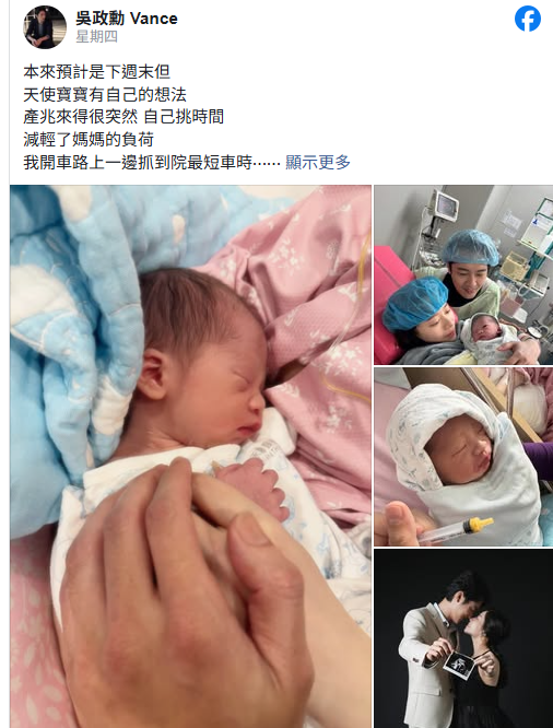 恭喜!《惡作劇》男星報喜「寶寶突然蹦出來」 淚曝「躺產房1奇蹟」:我的天使 Elmo 2026-01-10 檢舉 圖片來源:四季線上消息曝光後,許多粉絲與圈內好友紛紛湧入留言區送上祝福,網友們熱情留言:「恭喜恭喜!母子均安最重要」、「寶寶好可愛,祝福你們一家三口幸福美滿」、「哥你終於當爸了,太替你開心」、「孩子挑日子出生真有福氣」、「新手爸爸加油,期待看你分享更多育兒日常」。吳政勳的人生新篇章正式展開,相信這份喜悅將為他帶來更多正能量。圖片來源:吳政勳臉書資料來源:《自由時報》 Advertisements 回首頁 2/2 Advertisements 猜你會喜歡 猝逝12天!曹西平「靈堂布置曝光了」 老粉絲飆淚「最後還帶給大家歡樂」 才剛宣布退休!知名女星驚傳「10天後過世」 家屬證實「半年前就無法露面了...」 快訊/知名女主持驚傳「遭酒駕撞死」! 編輯精選推薦 More + 以為只是小感冒!本土女星悲痛證實「他併發肺炎過世」 一度淚灑現場「後悔同意插管」 台灣大咖病逝「享壽83歲」!周遊告別式痛哭「認婚內出軌」:兒子很恨我... 弟成植物人、姊猝逝!玉女歌手「遭前夫設套」騙走娘家房產 「狠斬16年婚姻」近況曝 曾比江蕙紅!台語歌后「爆未婚生子」遭指指點點 「2次手術害癱瘓」72歲近況曝 婚變尪落跑!單親媽「獨扛千萬債養孩」到處躲黑道 「一開口驚艷眾人」熬成台灣歌后 趕在40歲前閃婚!八點檔女星「宣布嫁給他」 尪驚人身分曝「媒人是柯叔元」 大咖男星妹妹出嫁!全身金飾「曾獲近千萬豪宅」嫁妝豐厚 兄妹長超像「一看媽媽懂了」:基因強大 台語歌后慟別摯愛!告別式上認「早隱瞞病情」 道歉哭喊:原諒我簽放棄急救 瞞病情積極工作!51歲影后「住院照曝光」眼神充滿光 丈夫悲慟「臨終前吃流食」:仍盼奇蹟降臨 離婚11年!洪榮宏愛女結婚「終破冰前妻」 「2爸爸牽她進場」催淚畫面曝 最新/賈靜雯深夜慟曝「她已離世」 淚PO合照喊:真的好愛你... 晚年兒孫滿堂!73歲影壇大哥「拄拐杖現身」腳步蹣跚 兒子「全程攙扶不喊累」網羨:又帥又孝順 慘遭飛車拖行!八點檔男星「臉全磨爛」驚悚畫面曝 目睹女星「崩潰嚇哭」頻發抖 22歲愛女病逝!資深男星「走不出喪女痛」留白長髮現身 掛骨灰項鍊「代女做1事」惹淚 離婚18年!前夫早知方文琳罹癌「願意付手術費」 「1理由遭拒」爆她術後狀況 24歲兒失明!于美人爆「他在飯店掃廁所」維生 不盼紅包只求「別再花我的錢」 本土劇女星生了!7年前凍卵「終於來到我身邊」 歌手尪嗨喊:生個足球隊 功德圓滿了!台語歌后「悲曝他離世」享壽95歲 淚喊:去當快樂的神仙吧... 再婚2年了!43歲李燕突喊「當媽媽實在太辛苦」 認「已經有愛的結晶」:最完美的幸福❤️ 15歲兒「睡夢中離世」!本土女星「送愛子火化」求做1事 「PO照圓滿了」:媽媽和你永不分開 快養不起小孩!本土男星「開計程車、斜槓房仲」 突宣布「離開台灣」:演藝圈沒工作 空窗多年!68歲陳美鳳突羞認「身邊有個他」 40年前就認識「遭男方母親拆散」 65歲男星獨居暴斃!大咖女星放下恩怨「送前夫最後一程」 昔遭動手6年嘆「死者為大」 李英愛輸了!73歲富商尪「超凍齡像40壯年」站一起超登對 「不時甜蜜咬耳朵」網羨慕 85歲失智父身亡!林葉亭突宣布「皈依佛門」 遇大師「開示一番話」忍不住淚崩